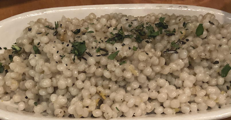 A couple of new side dishes are worth mentioning: a giant helping of perfectly cooked French green beans, and an equally giant helping of citrus-enhanced Israeli couscous. These would go well with any entree.