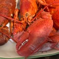 Freshly steamed take-out from George at Adams Fish Market. The cats are very curious.