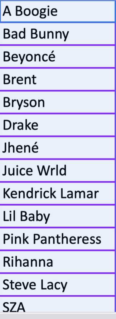 I’ve heard of exactly four out of these 14! Maybe that isn’t surprising: my students are all rising high-school sophomores from Boston and Cambridge public schools, all low-income, all but one being people of color. At age 75, white, and Jewish, I’m not really in that world, despite living in the inner city.