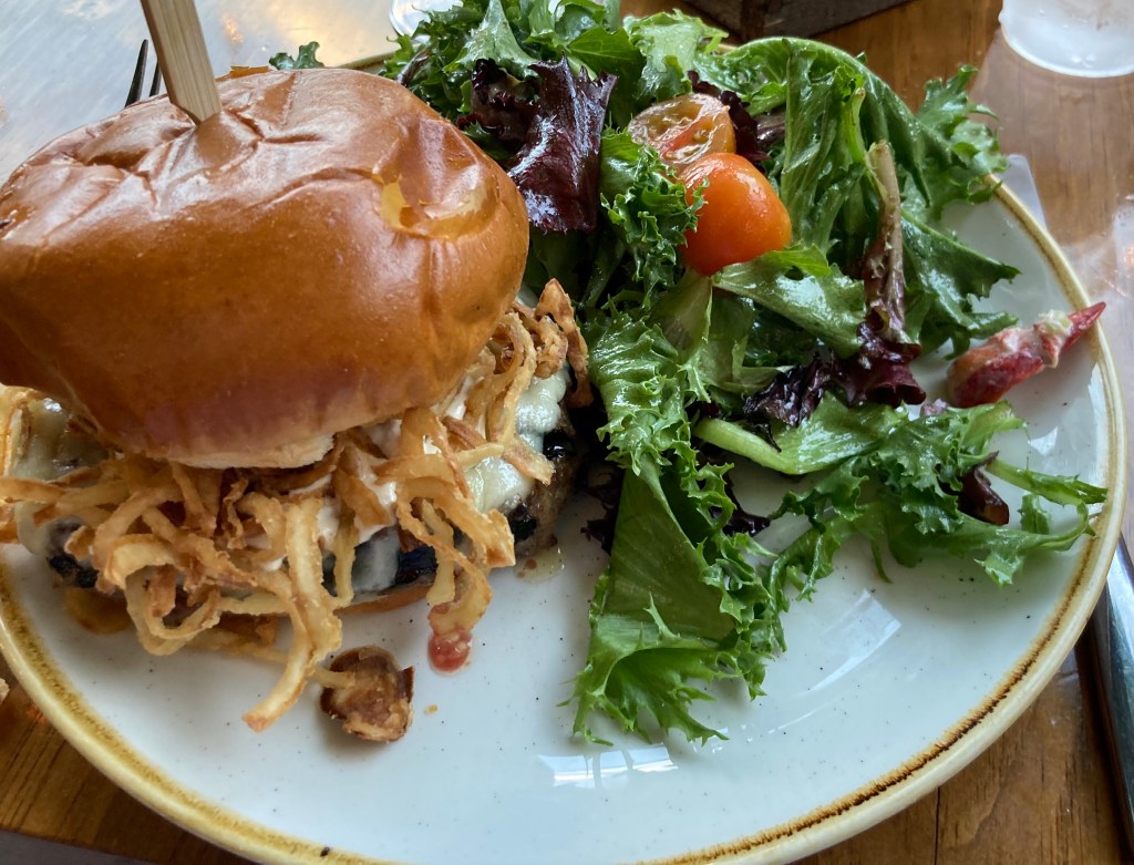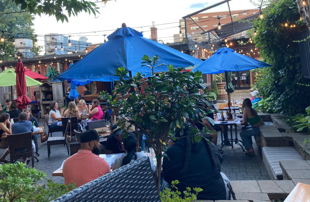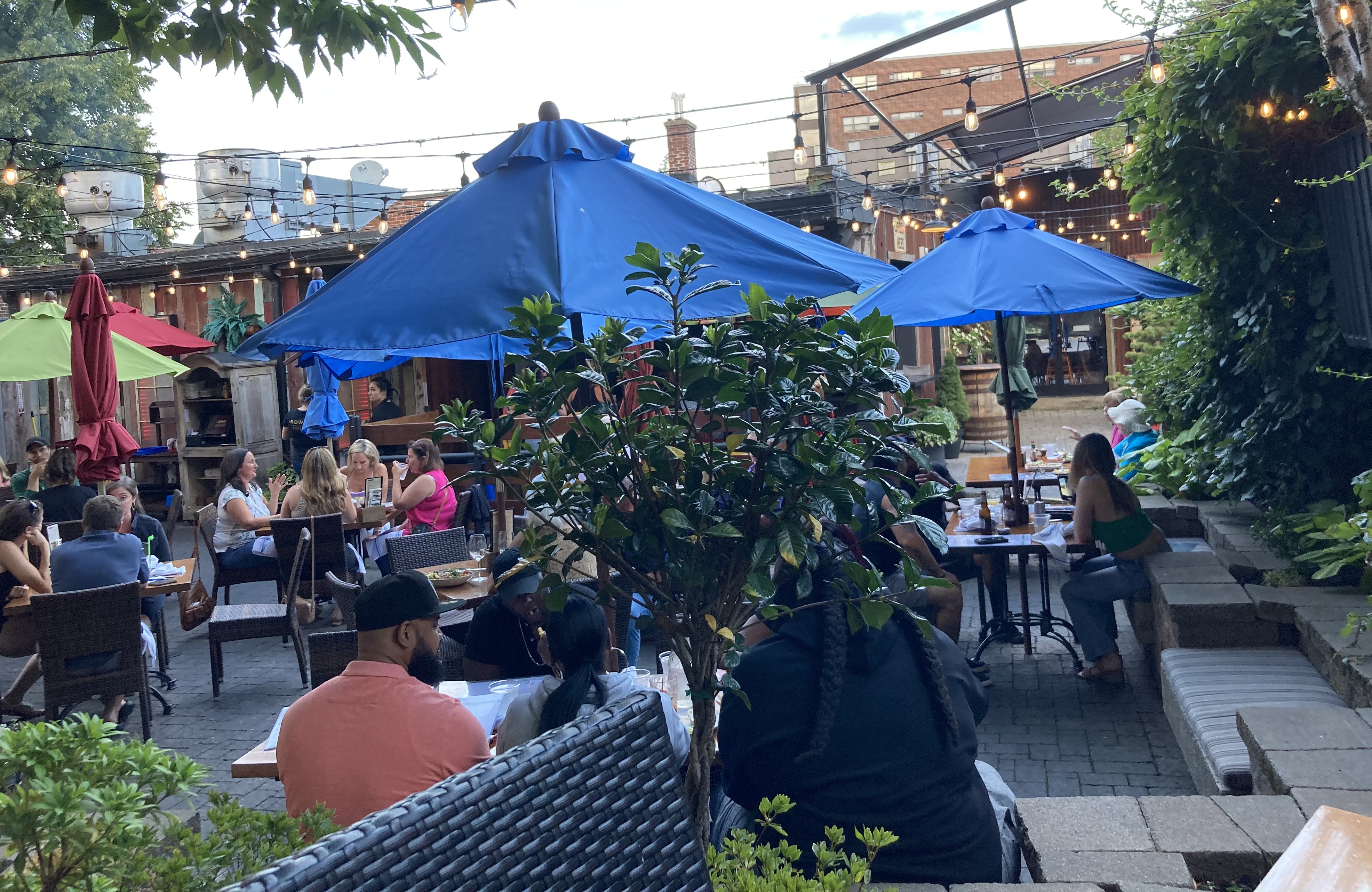 Barbara and I had dinner last night on the beautiful patio of The Bowery in Lower Mills. Lobster roll with gigantic tater tots for her, properly cooked (i.e. rare, as ordered) steakhouse burger with side salad for me. Good food and good weather for outdoor dining.