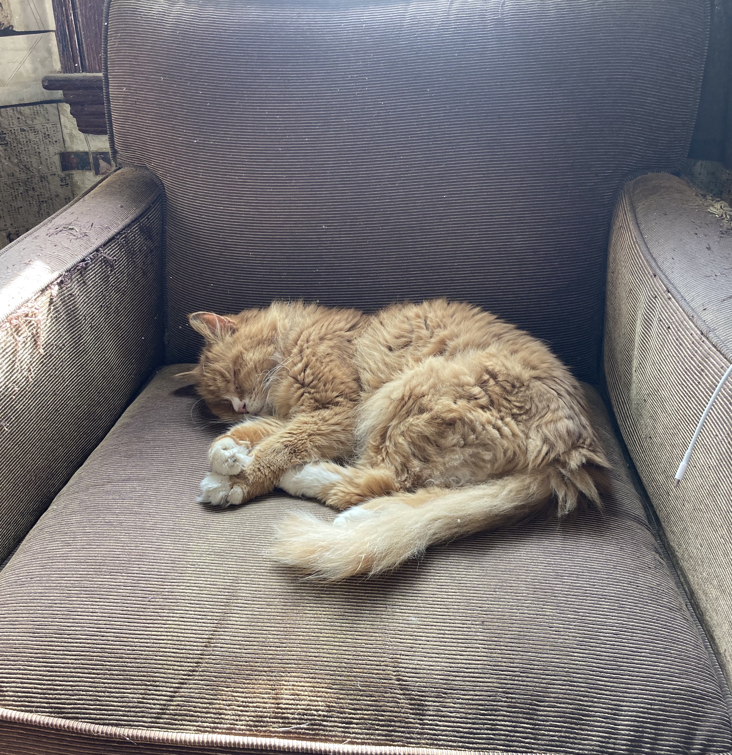 I went up to the den to sit and read in the easy chair, with my feet on the ottoman. But Flicka, of course, was occupying the ottoman again, and William left no room in the easy chair, which was apparently now the difficult chair: