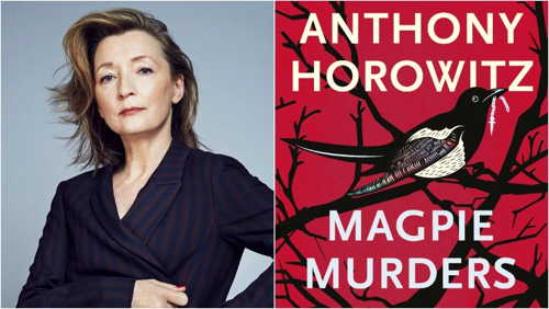 Here’s the problem: I’m talking, of course, about the recent PBS Masterpiece series by Anthony Horowitz, titled Magpie Murders, as was Horowitz’s own book that the TV series was based on. It’s well-acted, entertaining, engrossing, and sometimes confusing. The last is because it’s just like The Woman in the Library in one important way: not only is it a story within a story, but it takes place in three worlds: there’s the so-called real world, in which the outermost story takes place; we see within it the middle story, that of an editor and her friends and colleagues in 2015; and then periodically we switch to 1955, the time period of the action of a detective novel. I say “periodically,” but therein lies the major difference between Horowitz’s novel and his own adaptation.