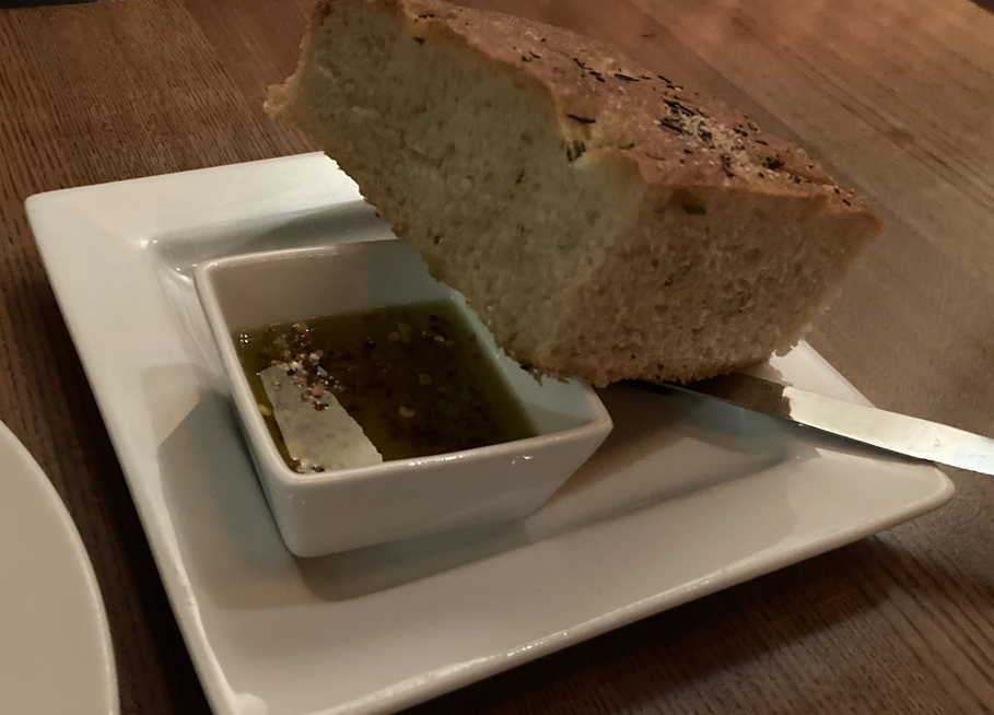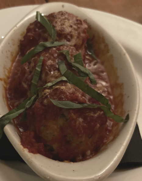 Yes, you can get excellent pizza and pasta at Tavolo. If that’s what you want, then by all means go for it; we’ve done that. But it’s not what we had last night. We started with the rosemary focaccia—accompanied by chili flakes, parmesan, and evoo—and the lovely house-made meatballs with marinara and parmesan. Then came the delicious entrees: a black-pepper-crusted flat iron bistecca with cognac cream for Barbara, and perfectly grilled lamb chops for me (both served with poached potatoes, broccoli rabe, and appropriate fresh herbs). In lieu of dessert, a grappa for Barbara and a double espresso for me. (Yes, I can easily go to sleep after a double espresso.)