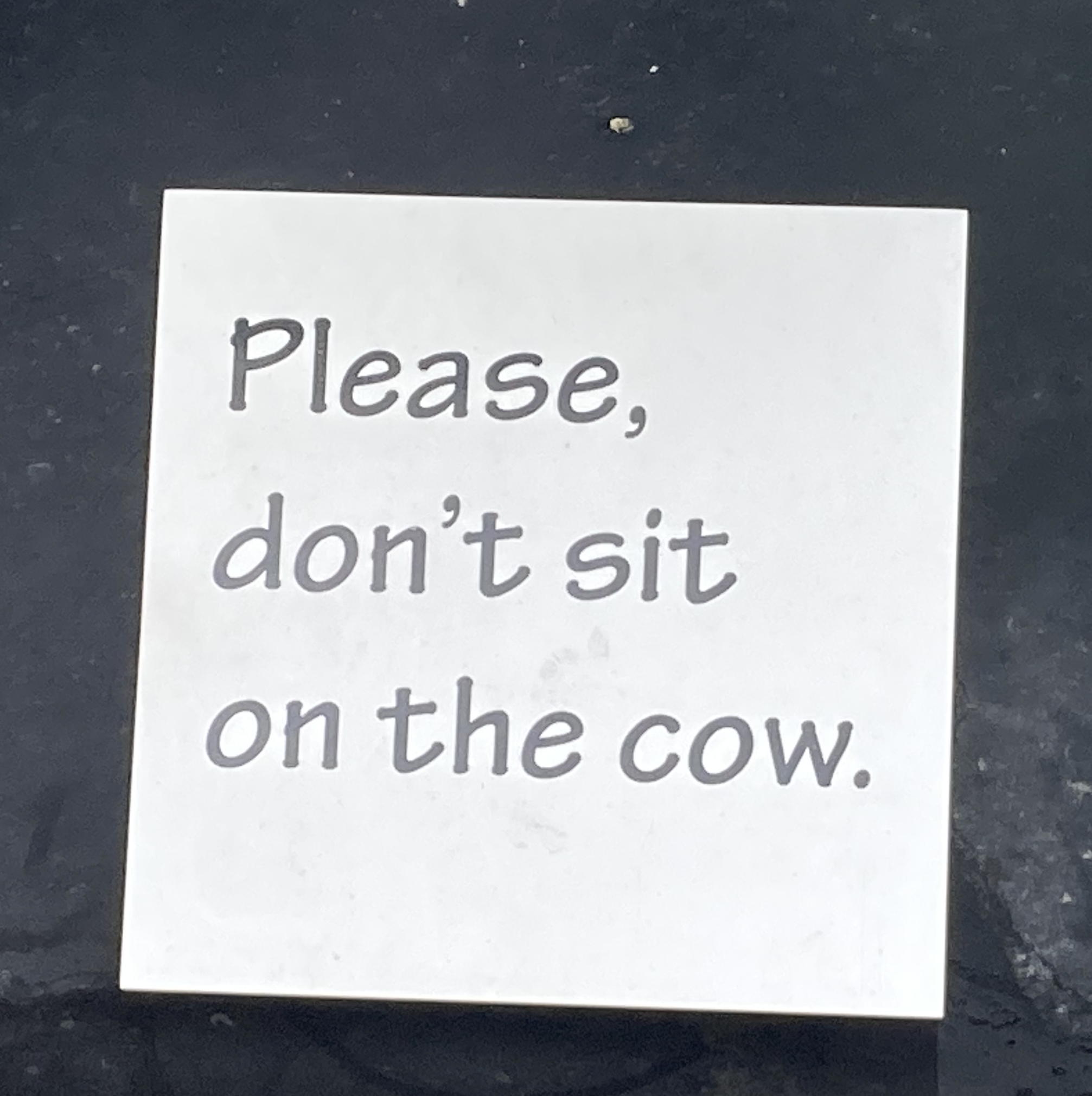 The cow was a couple of doors down. As the sign says, don’t sit on her.
