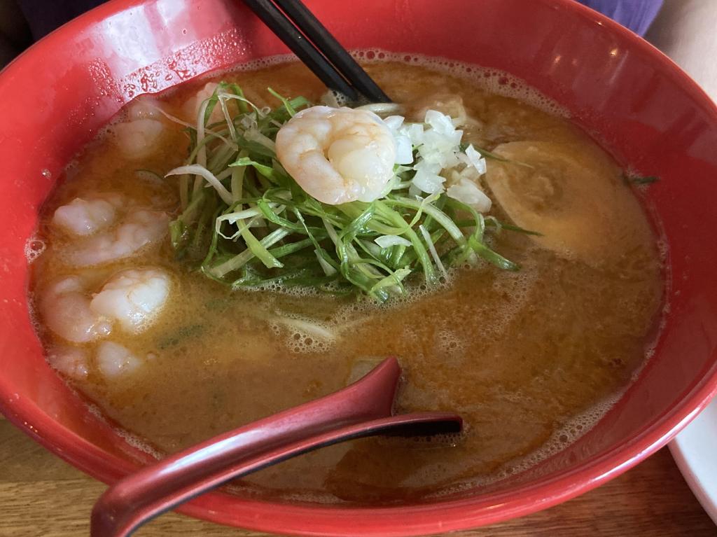 So we settled for the South Bay branch of Totto Ramen yesterday, even though they’re an international chain. (A small one, but still a chain.) It turned out to be very good, not quite at the level of the Neponset Cafe but still more than adequate. More and more restaurants keep opening in the ever-expanding South Bay neighborhood, where this branch is. A second branch is in Assembly Row in Somerville, another ever-expanding restaurant mecca. If that’s inconvenient for you, try one of the branches in Taipei. Anyway, Barbara started with a pork bun, followed by shrimp ramen. I started with fried gyoza, followed by spicy paitan ramen with pork belly and jammy egg. Everything was delicious, and service was both friendly and impeccable.