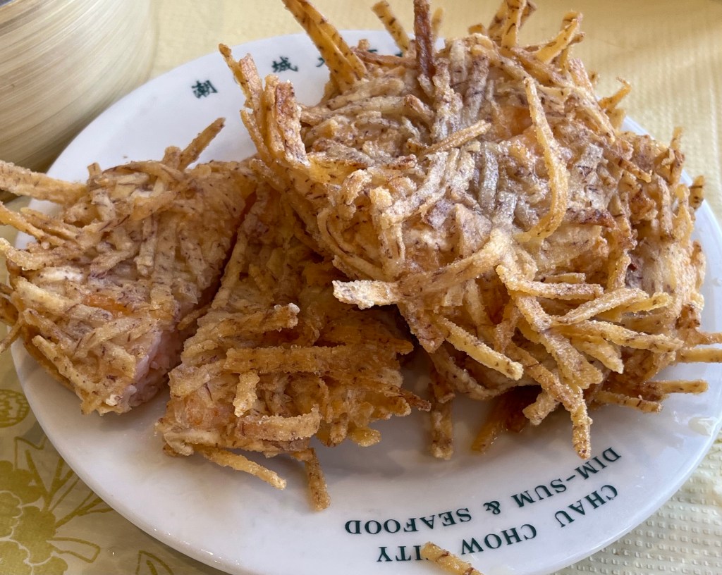 And how about those Chinese lunch days? We ordered dim sum twice — once from Chau Chow on Morrissey Blvd, once from Winsor Cafe across the river in Quincy. (I know, it’s not Dot, but you can see Dot from its roof, as Sarah Palin didn’t say.) This time I have pictures, from which I hope it’s obvious what’s what — even though I learned over and over again that “obvious” is the most dangerous word in mathematics. Fortunately, this isn’t mathematics.
