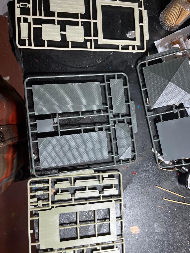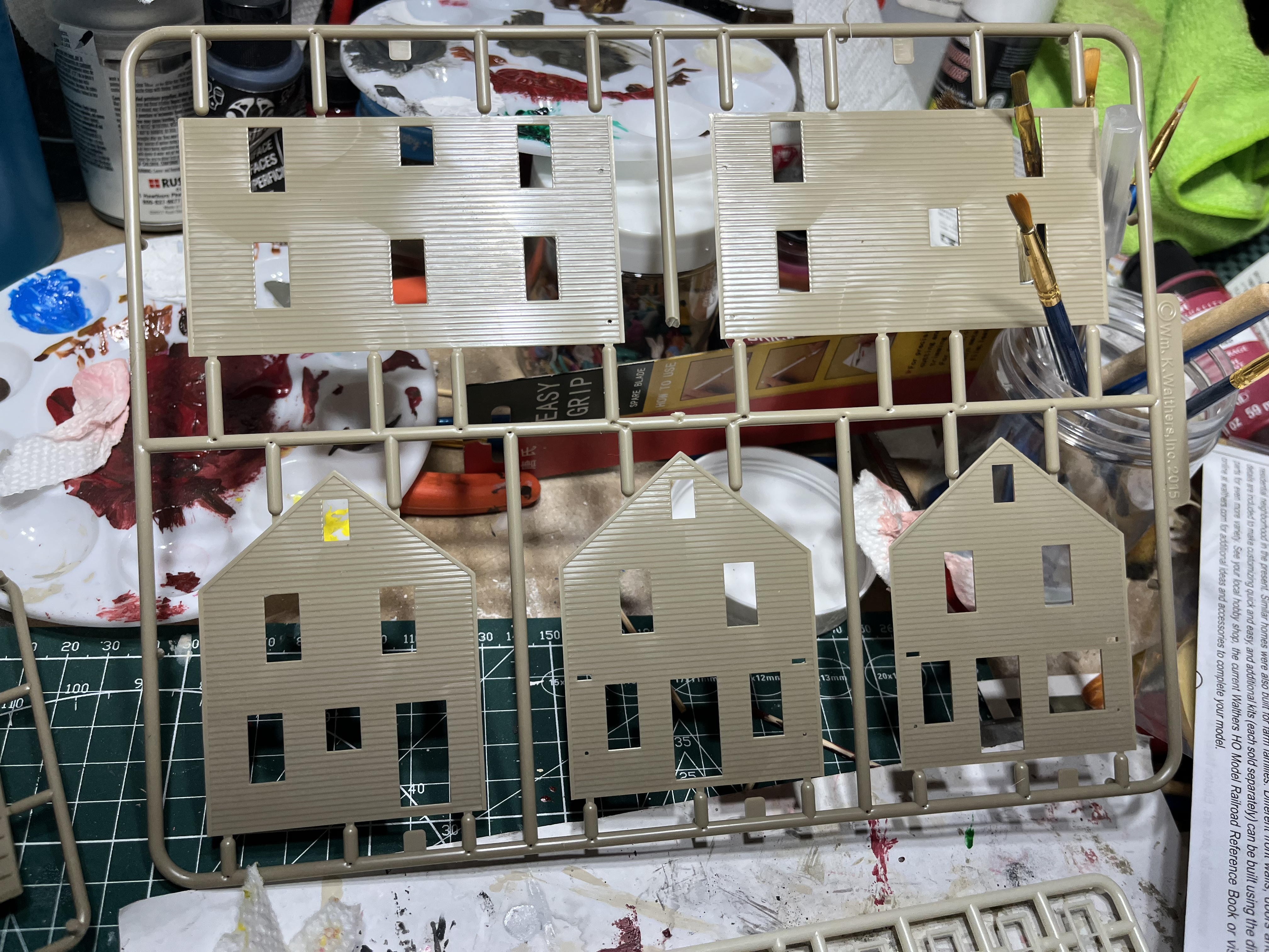 So the colors on the box cover need to be replaced with better ones. And everything looks like plastic, which won’t do. Yes, of course, it is plastic — but it’s not supposed to look like it. It’s supposed to be realistic. Paint and weathering will help solve both problems; those are two more skills that Meredith has and I don’t.