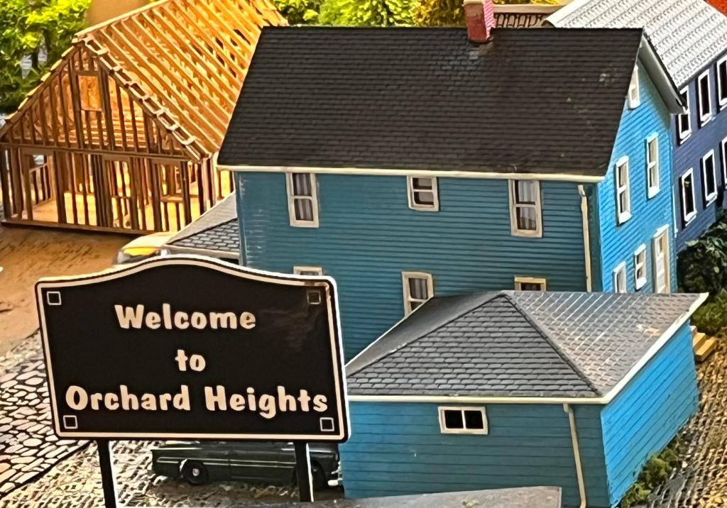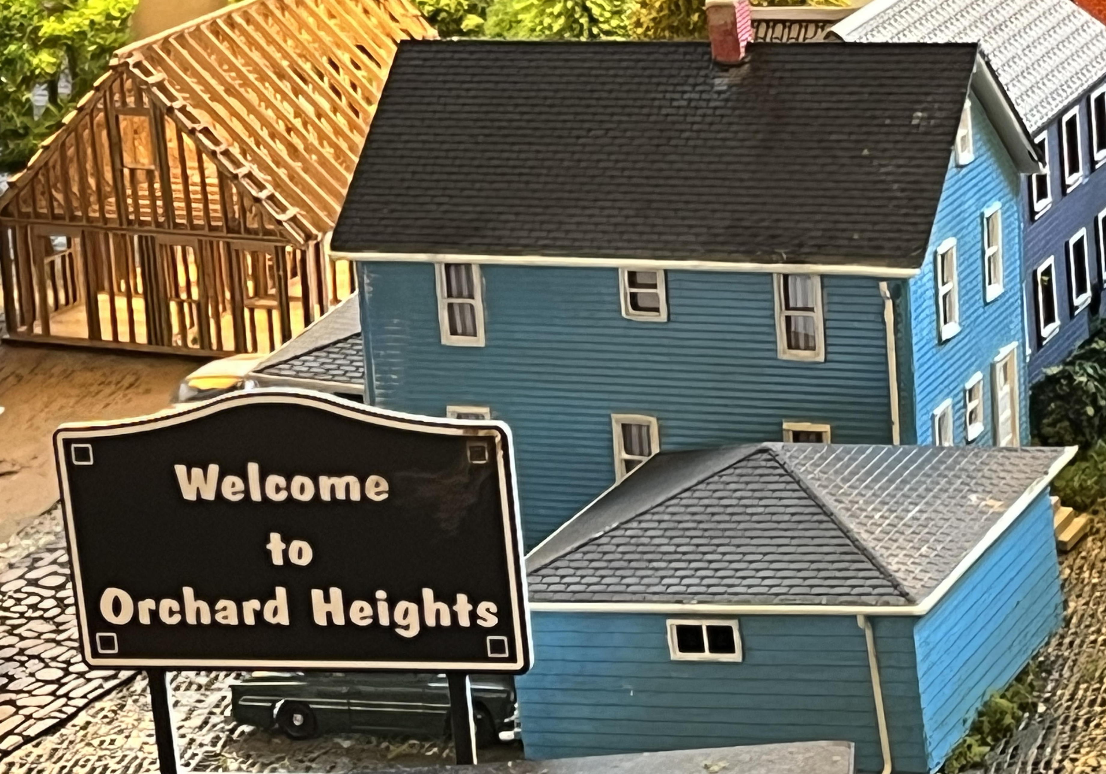 And now we move on to another neighborhood in my model railroad layout, a.k.a. Rose City: Orchard Heights is — wait for it — the Rose City neighborhood with the highest altitude. What a surprise! But it no longer has orchards, as it did in the 19th and early 20th centuries, so the name is only half apt. [Can one say that?]