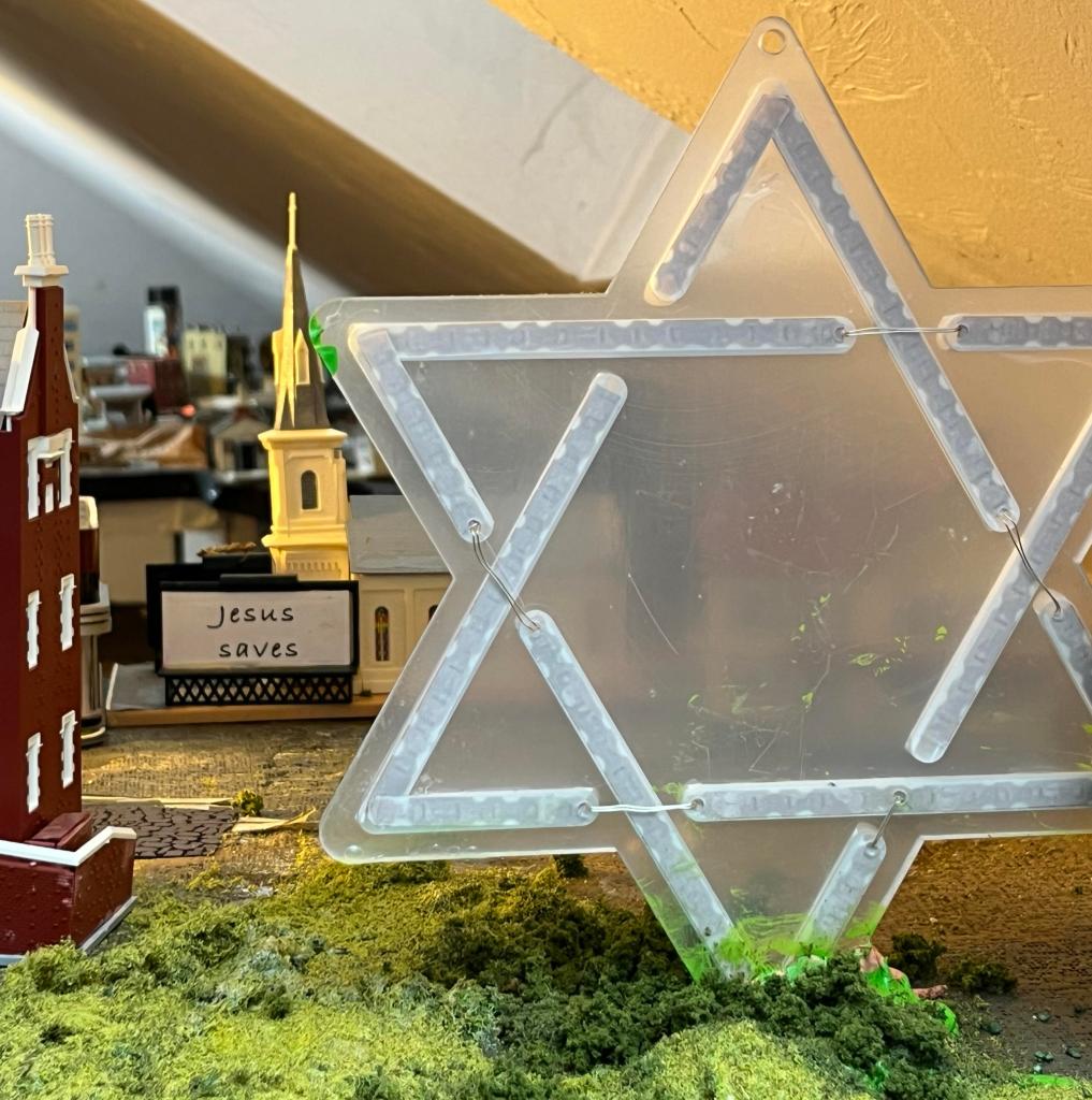 But trouble is brewing. The Vice President of the congregation (who has not moved to Newton, as he considers Newton too woke) is distressed that the Church of the Trinity has moved in across the street, so he had his construction company erect a 50-foot-high Star of David facing the church: