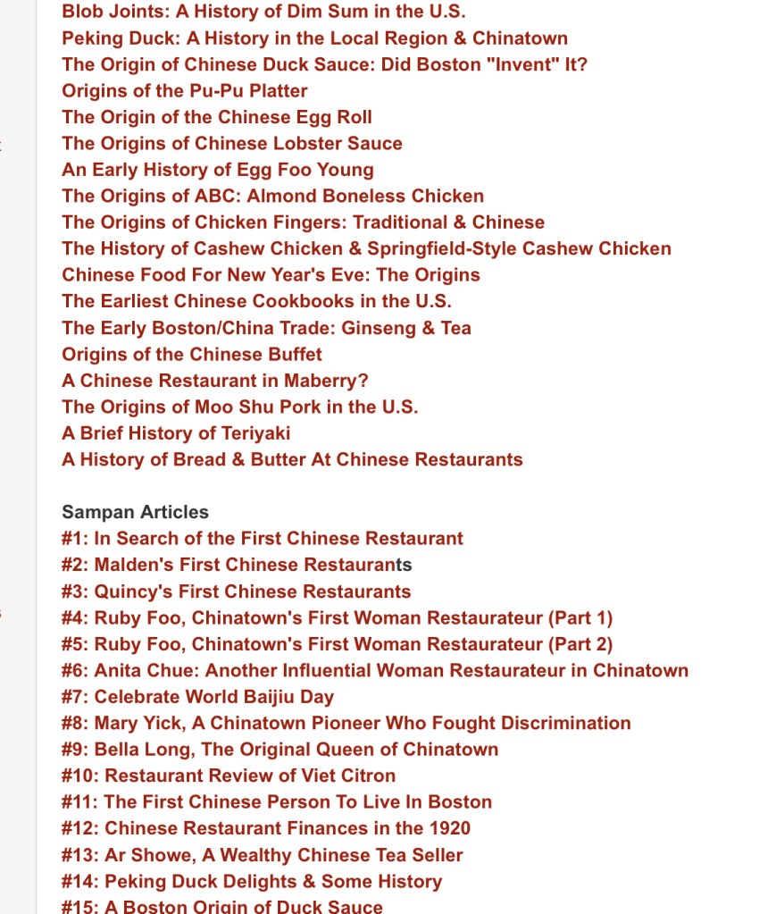 For a comprehensive overview, you will want to start with his post from 4/29/2020, which details the social history of Chinese-Americans in Greater Boston and their cuisine. Also Connecticut for a lagniappe. Also a lot of tangentially related material as well. This cornucopia will last you for weeks! Just scan your eyes down this post and you will be drawn into a wonderland of information. For example, here is but a fraction of the links there, all to Auffrey’s articles: