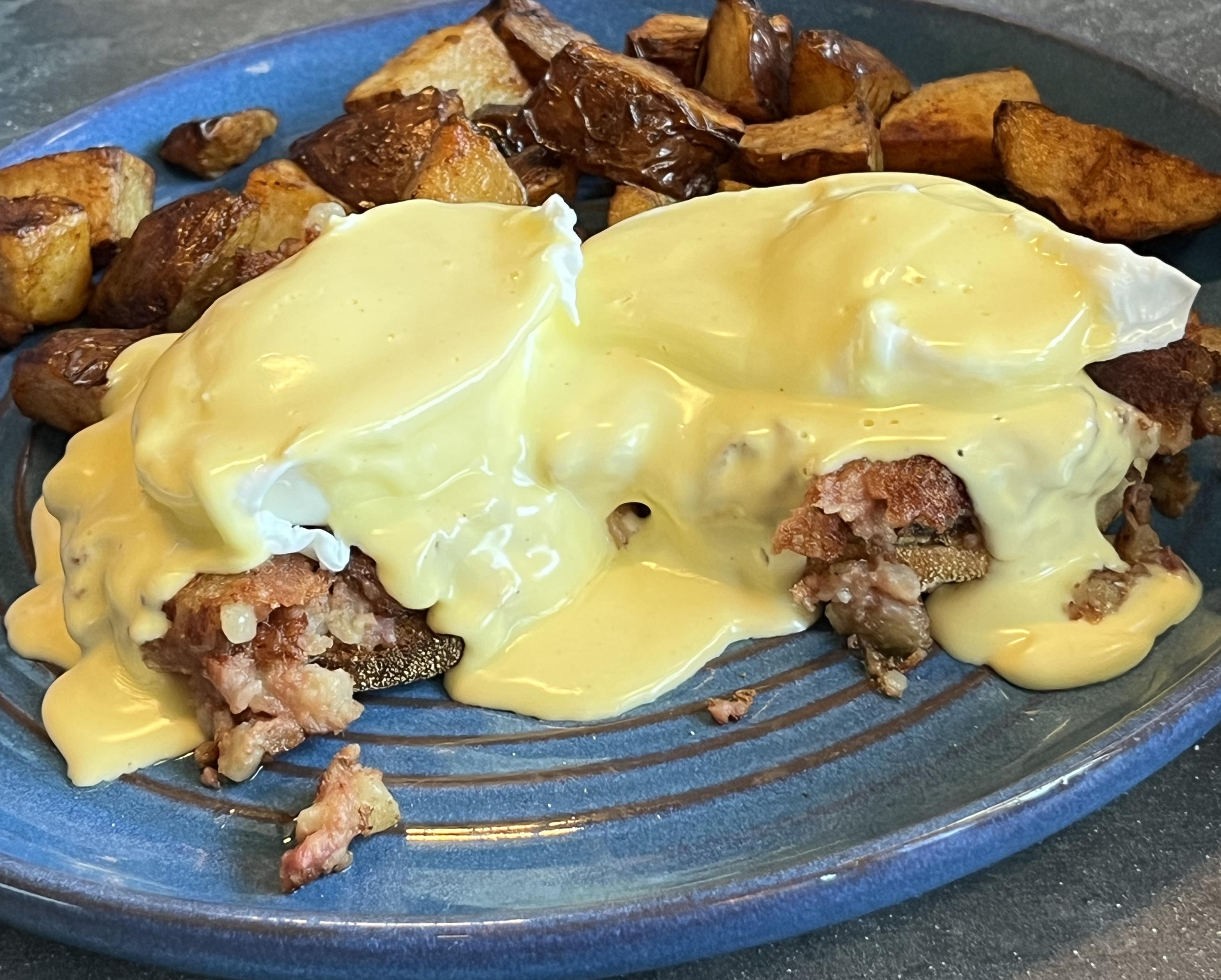 Barbara had the corned beef hash benedict, which came with hollandaise sauce on an English muffin, as one might expect, with home fries on the side. (It was breakfast time for Barbara.)