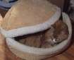 William is pretending he’s a hamburger…