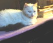 The cat on the (purple) mat