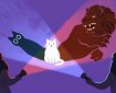 The cat on the (purple) mat