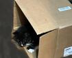 Flicka feels safe, showing off her extra toes in her sideways box.